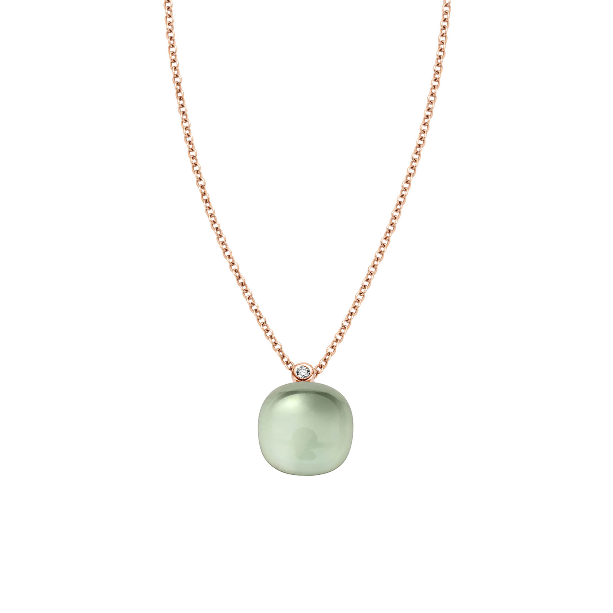 Ref. 20H34Rgamp_42 – Dieser Mini Sweety Anhänger ist aus 18-Karat Roségold gefertigt und mit grüner Amethyst, Perlmutt und unserem 0.01 ct. Signature-Diamanten besetzt. Die reizvollen Cabochons, die in 50 außergewöhnlichen Farbtönen erhältlich sind, sind definitiv das herausragendste Merkmal von BIGLI. Die Kollektion wurde mit einer ausgeklügelten Schichttechnik geschaffen, bei der mehrere Steinschichten miteinander kombiniert werden, um jedes Mal neue Farben und unterschiedliche Schattierungen und Intensitäten zu erzeugen. Alles 100% natürlich, 100% mineralisch.