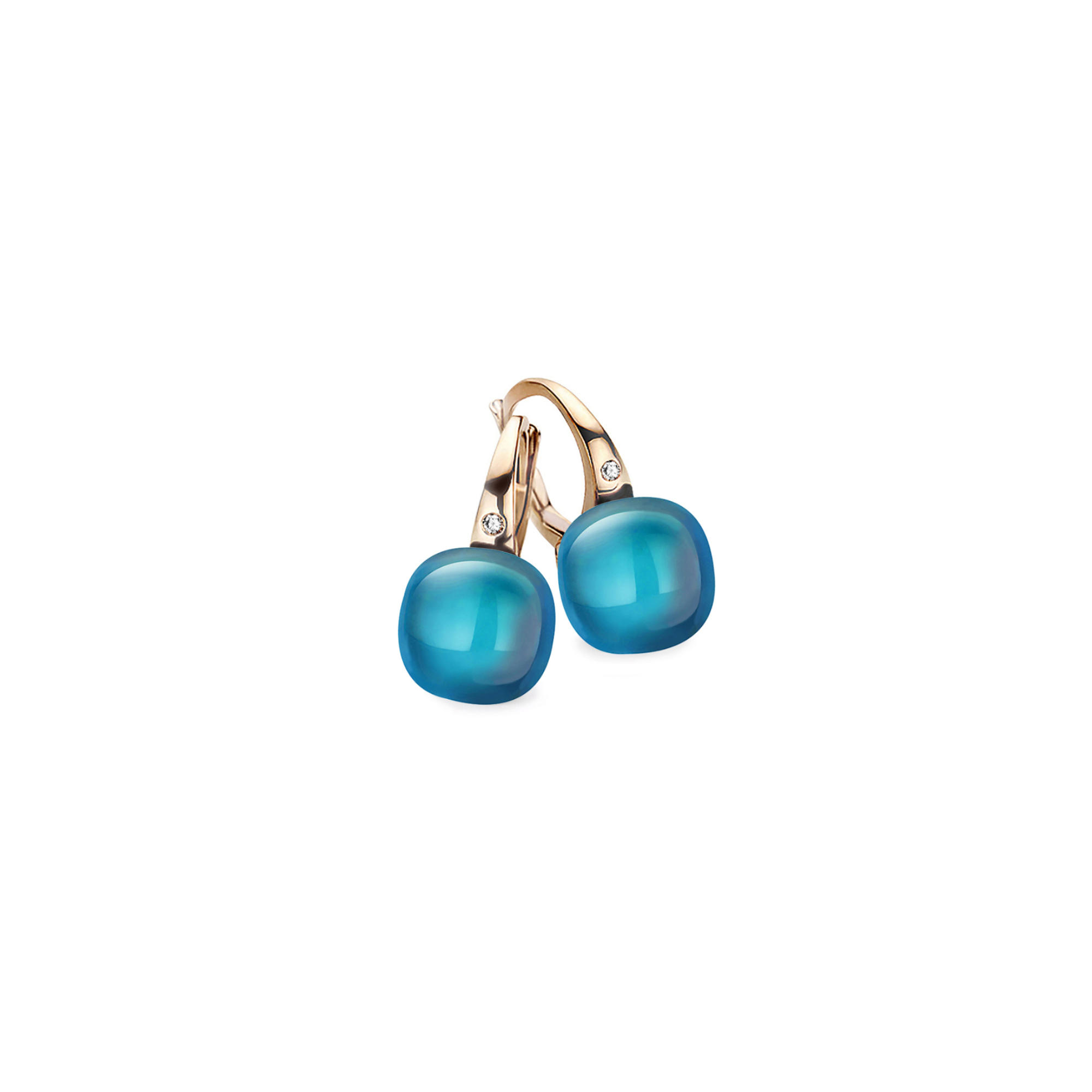 Ref. 20O42Rlobmp – Diese Mini Sweety Ohrringe sind aus 18 Karat Roségold gefertigt und mit London Blue Topas, Perlmutt und von Bigli charakteristischen Diamanten von 0,02 Karat verziert.