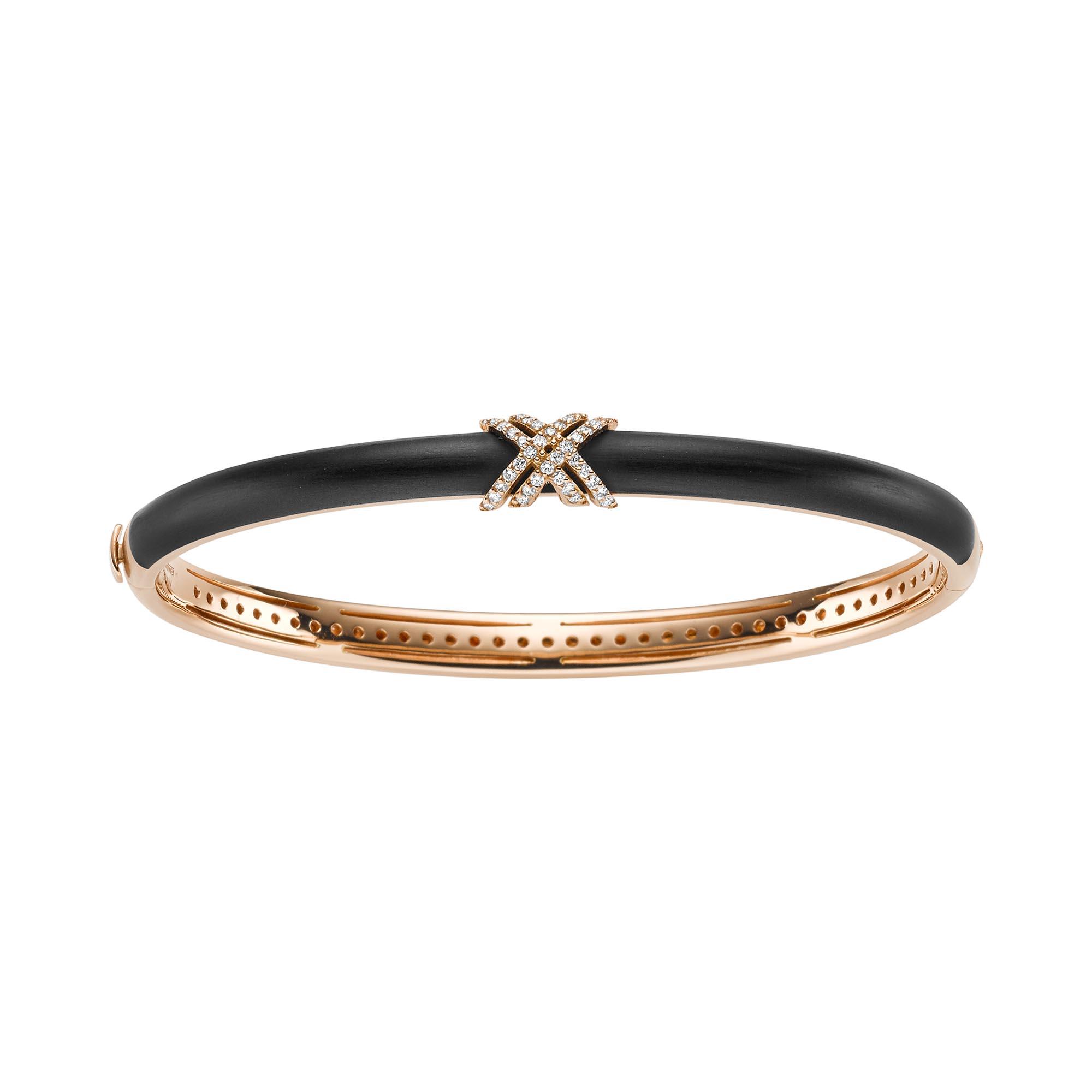 Ref. 65-0957873-1100 – Der schmale Armreif aus Roségold und schwarzen mattiertem Kaltemaille liegt durch seine ovale Formgebung sehr gut am Handgelenk. Er schmückt sich mit luxuriösem Understatement. Ein Begleiter für jeden Tag.