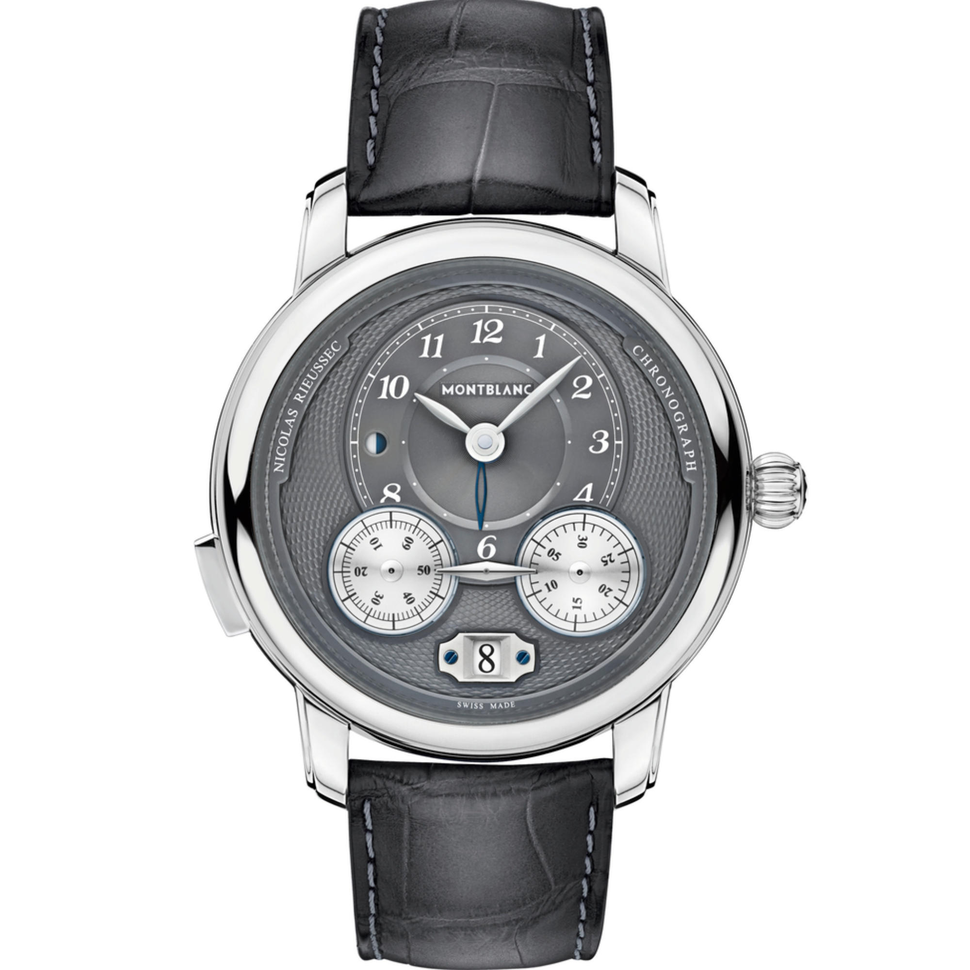 Ref. MB119954 – Nach der Einführung des Star Legacy Nicolas Rieussec Chronographen aus Edelstahl mit silbrig-weißem Zifferblatt im vergangenen Jahr präsentiert Montblanc nunmehr zwei neue Versionen: eine in einer Kombination aus Rotgold und Anthrazit und ein weitere aus Edelstahl mit anthrazitfarbenem Zifferblatt. Beide Uhren sind mit passenden anthrazitfarbenen Sfumato-Alligatorlederarmbändern ausgestattet, die in der Ledermanufaktur der Maison im italienischen Florenz gefertigt werden. – Diese Uhren sind eine Hommage an den französischen Uhrmacher Nicolas Rieussec, der den ersten, 1821 patentierten Tintenchronographen erfand und so die Geschichte der Feinuhrmacherei nachhaltig prägte.