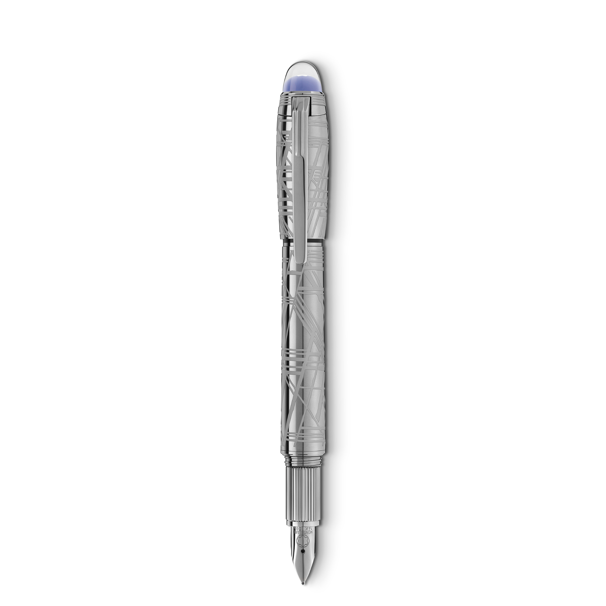 Ref. MB130219 – Starwalker SpaceBlue blickt jenseits des Planeten Erde in Richtung der Sterne und der Galaxis. Die betont maskuline und futuristische StarWalker Collection verleiht der Kappe und dem Korpus aus Metall einen neuen Look durch ein Design, das an die Struktur des faszinierenden Widmanstätten-Gefüges erinnert, eine der hypnotisierendsten Kreationen der Natur. Alle Metallteile sind mit dunklem Ruthenium beschichtet und bei der Kuppel mit einem tiefen Weltraumblau versehen, das an die Nuancen eines sternenbedeckten Himmels erinnert, über dem das Montblanc Emblem schwebt. Der Füllfederhalter ist handgefertigt und verfügt über eine Feder aus ruthenium-beschichtetem 585er Gold.